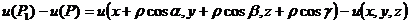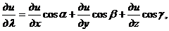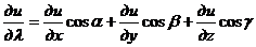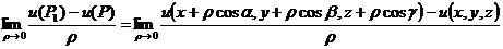 Пусть задано скалярное поле, то есть задана функция u (x, y, z). Возьмем точку P (x, y, z) и какой-нибудь луч λ, из нее выходящий. Направление этого луча зададим углами α, β, γ, которые он образует с направлениями осей Ox, Oy, Oz (рис. 1.1.)