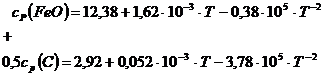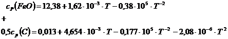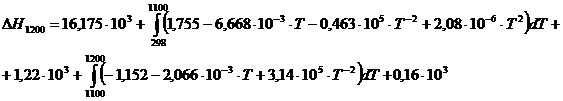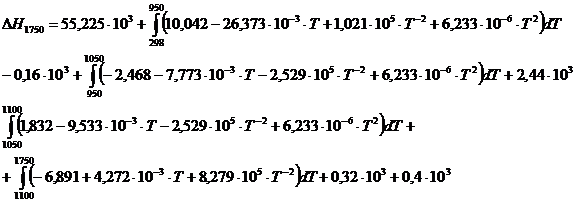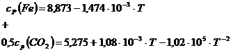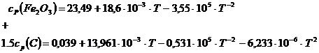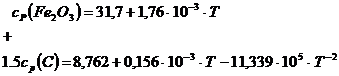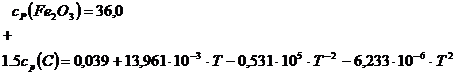 расчете тепловых эффектов реакций для условий переработки брикетированного