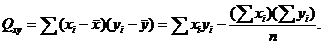 Вычислим суммы квадратов отклонений от среднего и произведений отклонений