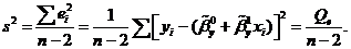 7) Найдём остаточную дисперсию (несмещённая оценка дисперсии ошибок