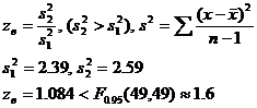 Проверяем гипотезу о равенстве дисперсий H0: σ12=σ22