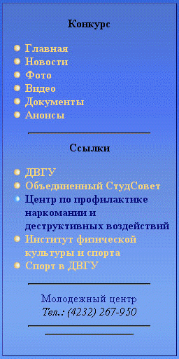 «ДВГУ, спорт, здоровье», а также указан телефон молодежного центра ДВГУ.