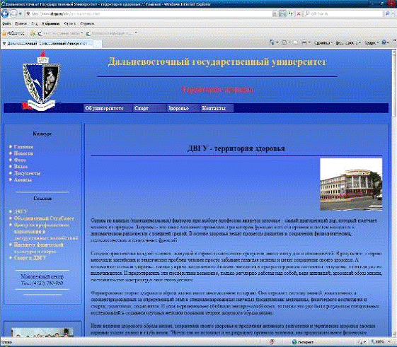 Разработка информационного ресурса 'Вуз - территория здорового образа жизни'