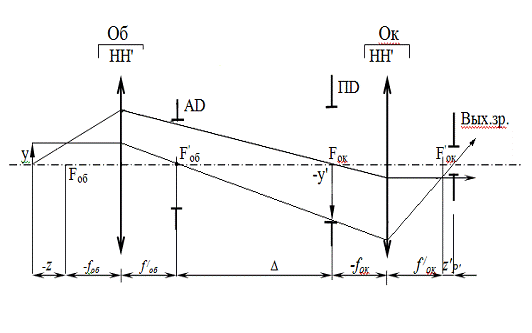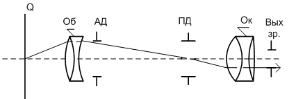 принципам построения таких систем, содержит: объектив, окуляр, апертурную и