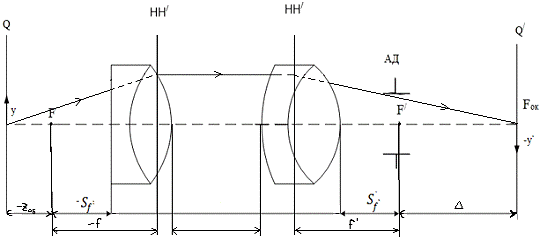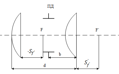 того на расчетной схеме показаны фокусные расстояния, оптический интервал и