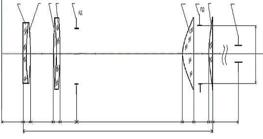 объектив М-42,параметры которого приведены в табл.2, а схема показана на рис.3.