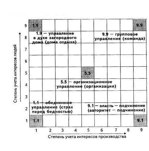 соответствующему позициям 5.5 и 9.9. В' то же время стили руководства,