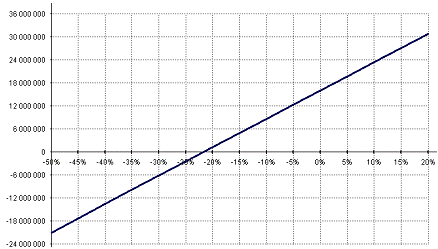 проекта от колебаний объема продаж. Диапазон колебаний составляет -50% - + 20%.