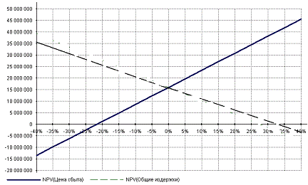 Рис. 2.8. Анализ чувствительности NPV к цене и общим издержкам