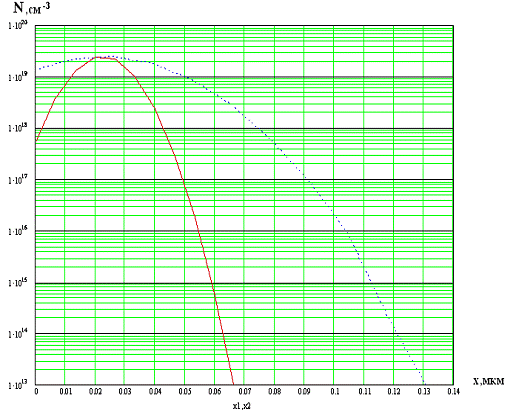воспользовавшись графиками распределения примеси (рисунки 18 и 19) - точка