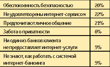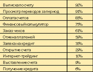 интернет-банкинга в 10 крупных банках, где они есть показал следущее.