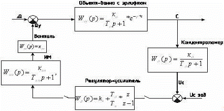 Объект (кисловочная ванна с эрлифтом) описывается передаточной функцией: