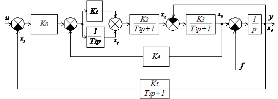 интеграторов. Тогда, соответственно структурной схеме составляем