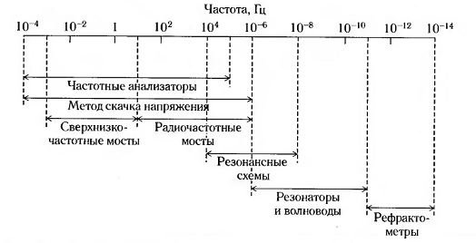 частоты измерения применяют разные методы: мостовые, резонансные, волновые.