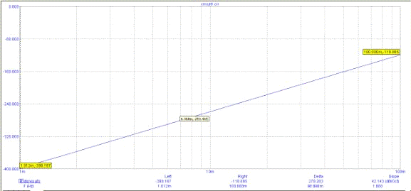 данном устройстве крутизна ската получилась 42.143 дб/окт для схемы с АЧХ