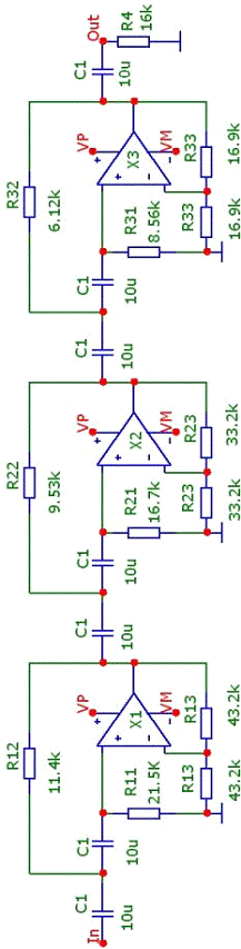 трех операционных усилителей. Теоретически данный фильтр можно было бы