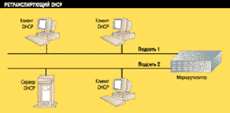 где маршрутизатор действует как ретранслирующий агент. Когда клиент DHCP в подсети 1 посылает