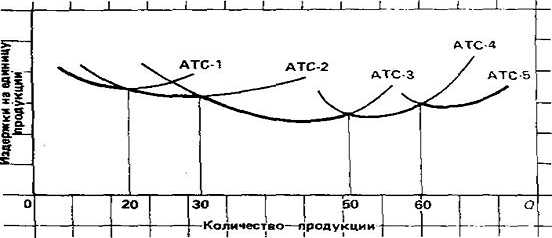 наименьших значений. В точке, где кривая средних издержек достигает минимума,