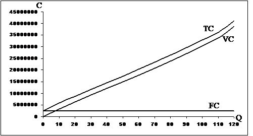 фирма оптимизирует объем производства, с точки зрения минимизации затрат (