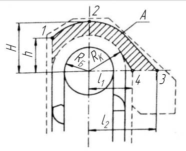 кожуха определяется огибающей параболой А (см. эскиз п.7.2.1), которую