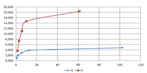 результатам расчетов строим график пути и времени разгона автомобиля Ford