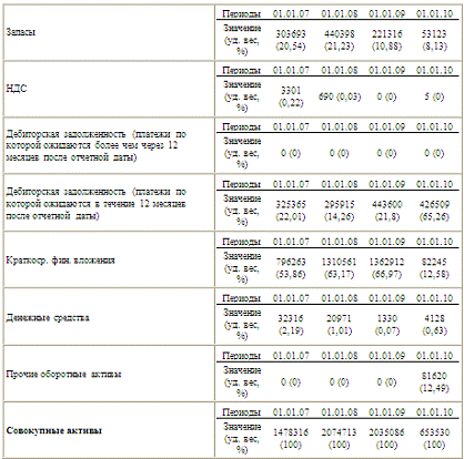 установлено снижение платежеспособности предприятия. На 01.01.2010 года
