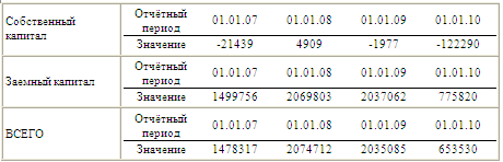 всего анализируемого периода и на 01.01.2010г. составил -142290 тыс. руб. Анализ долгосрочных и краткосрочных обязательств. Привлечение