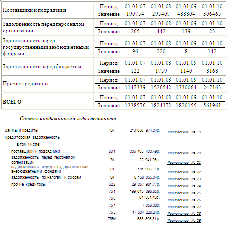 За анализируемый период кредиторской задолженности относительно начала