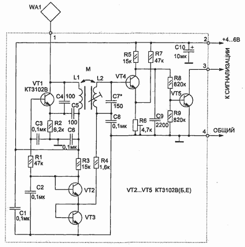 Схема датчика со звуковым индикатором