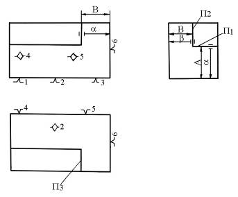 за допомогою шести точок, розташованих відповідним чином на поверхнях деталі і