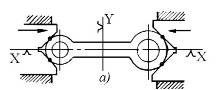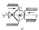 торців вала. Дана схема реалізується за допомогою відкидного упора (рис. 70, б), який після силового