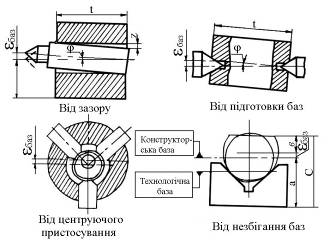 (через похибки зацентровування) похибки базування, обумовлені різним положенням