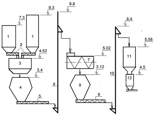 смесителя и происходит выгрузка готовой смеси в подсмесительный бункер на