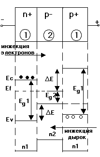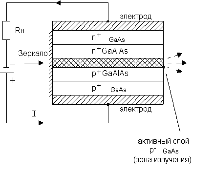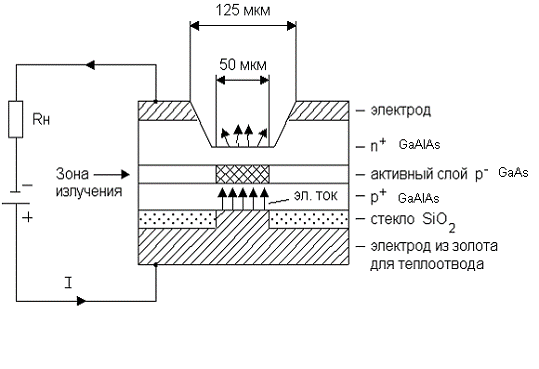 стимулированного излучения фотонов при рекомбинации носителей заряда.