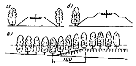рекомендуются аллейные посадки у подошвы насыпей высотой 6-9 м и на бермах,