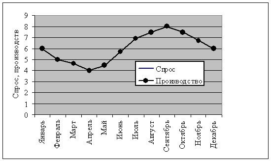 означает постоянное производство на уровне минимального спроса и отклонение (не