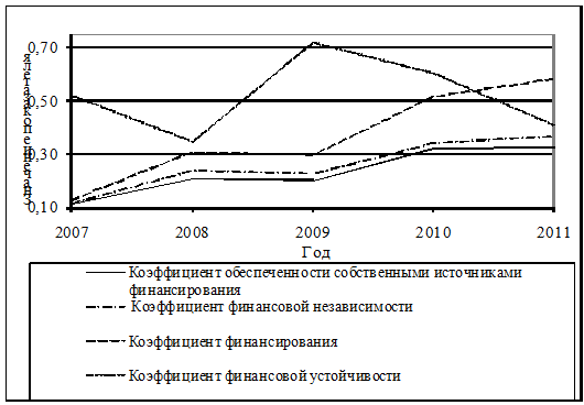Расчет показателей финансовой устойчивости ООО «АЛЬФАПАК 2000» с 2007 по 2011