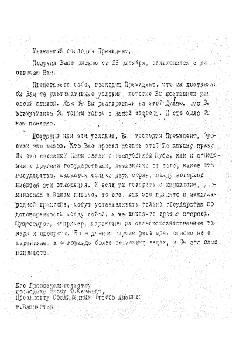 событий Карибского кризиса. В нём вождь СССР описывает, как ему пришла мысль