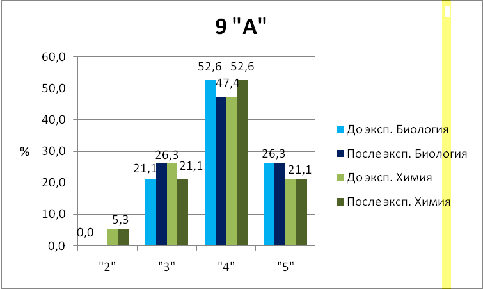 и 9 «Б» классов по биологии и по химии за экспериментальный период (количество