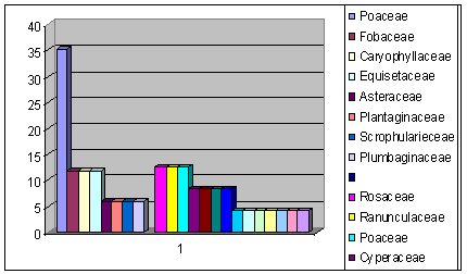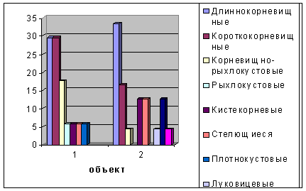 родов и 14 семейств. Анализ показал что для первого участка характерно более