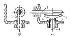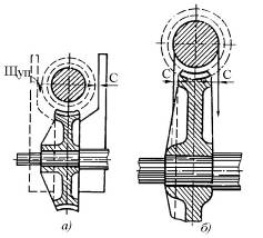 Рис. 10. Перевірка встановлення черв’ячного колеса: а - спеціальним шаблоном; б - виском