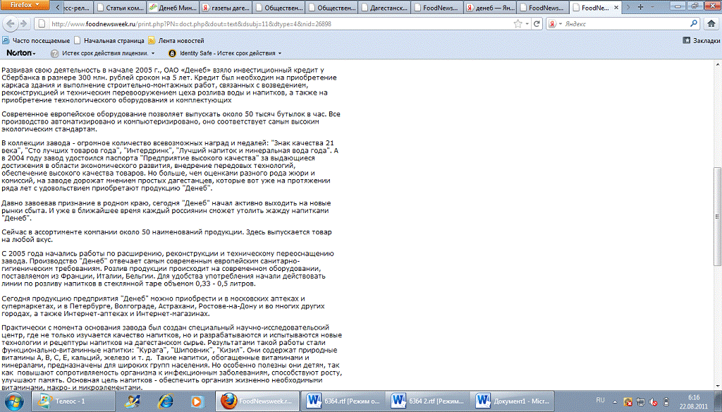 Рассматриваемое предприятие - ОАО «Денеб» - производитель безалкогольной