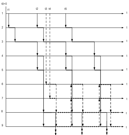 t3,t4 - моменты поступления фоновых задач на обработку в ВЦ.