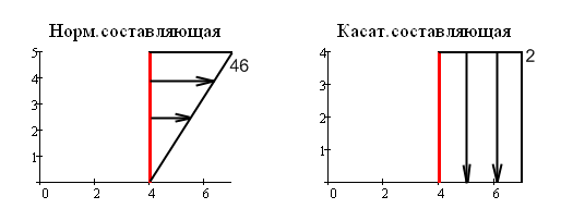 Удобнее строить для каждой стороны эпюры нормальных и касательных