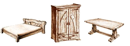 Рис. 16. Слева: Кровать «Викинг». По центру: Шкаф платяной.