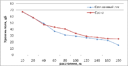 дистанционная и высотная зависимость напряженности поля в лесу.