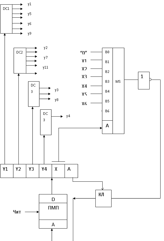 З полів Y значення керуючих сигналів йдуть на дешифратори.