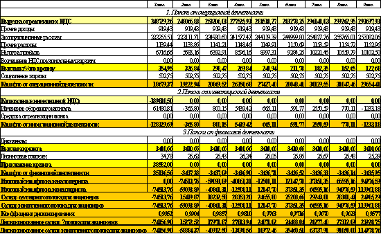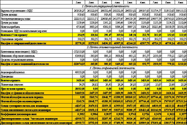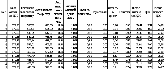 оборотного капитала», «Расчет лизинговых платежей», «Анализ движения денежных