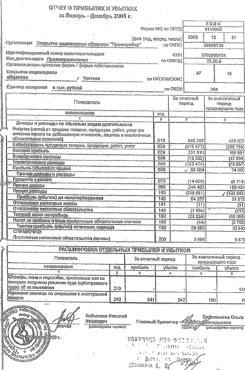 деятельности ОАО "Промприбор" явилось увеличение чистой прибыли в