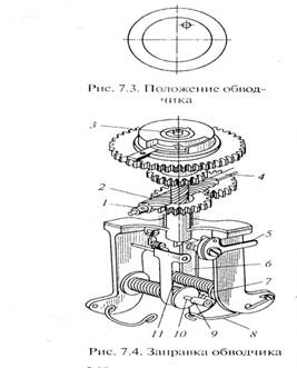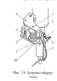 отверстие 10 в капсюле 8 и заводят конец под транспортирующую лапку. Натяжение